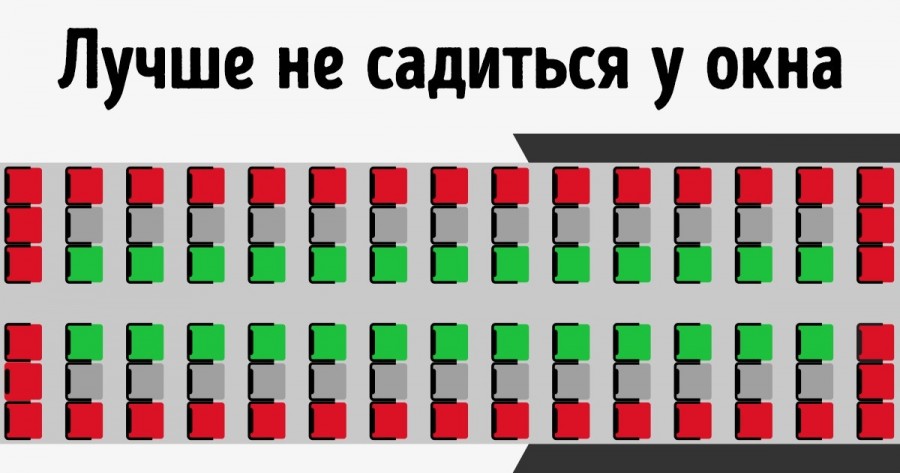 • Главное — не забывать, что в этом случае боковое кресло в средней секции лучше, чем место у прохода в крайних рядах. А уж уступить его другу или забрать себе — решать вам.